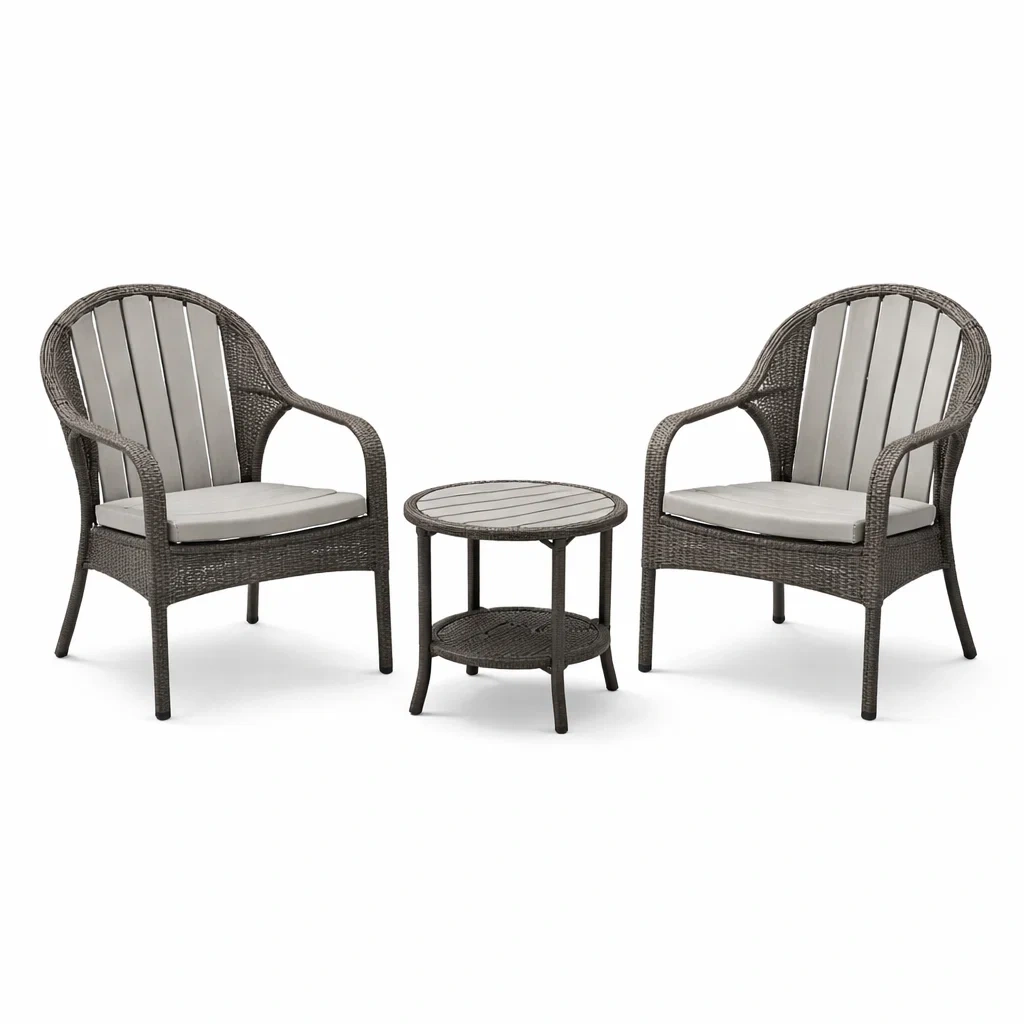 Ensemble de détente en bois composite beige avec fauteuils à bascule et table
