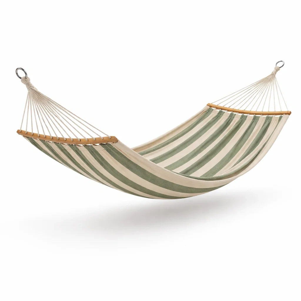 Hamac en coton polyester à rayures vert beige